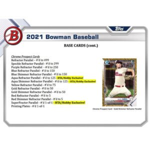 - 2021 Bowman Baseball rolls it back out with another stellar lineup of the top prospects and superstars in Baseball!